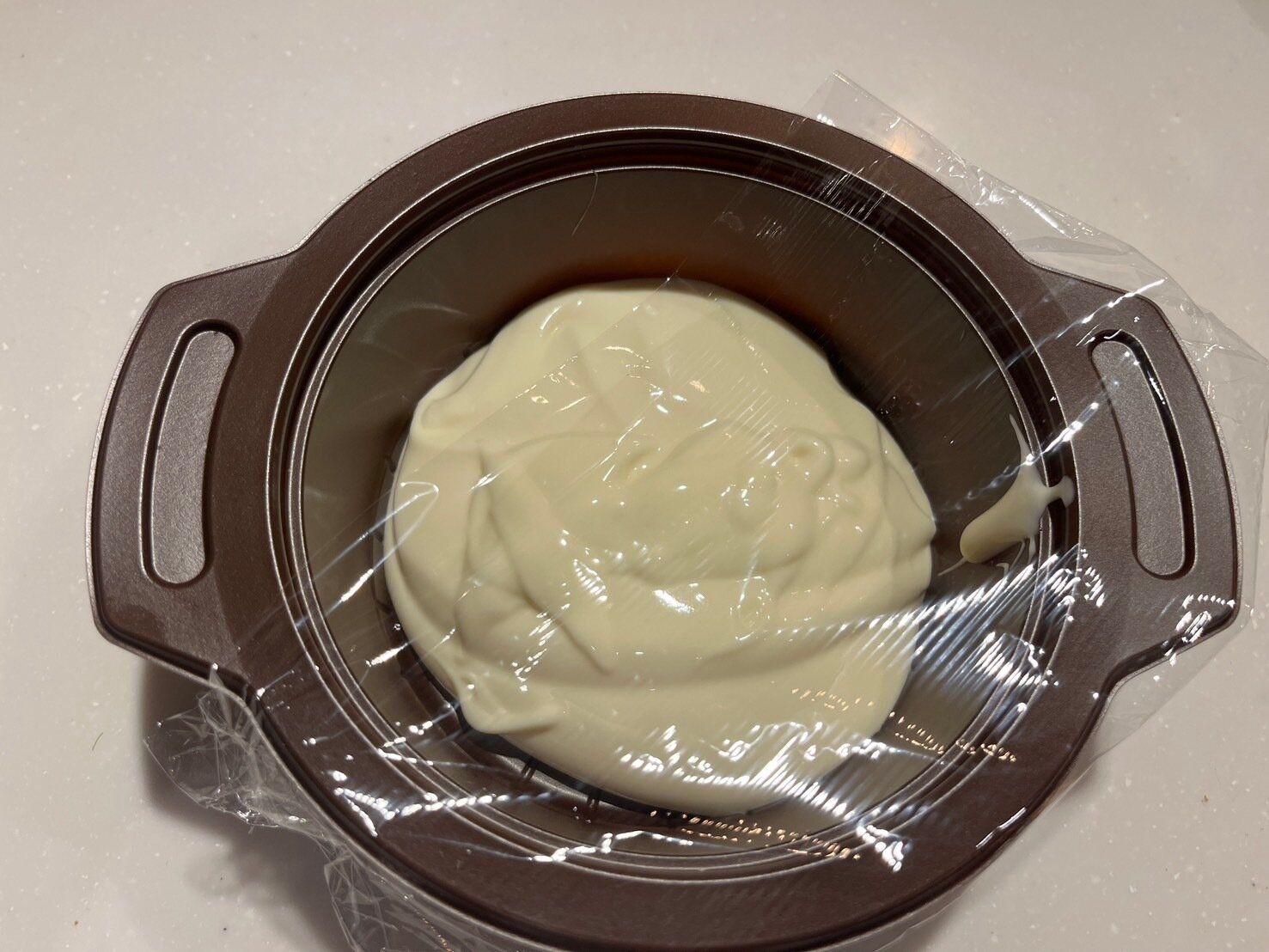 容器にチーズソースを移したら、蒸気が抜けるように端を少し開けてラップをかけます。電子レンジで2分を目安に加熱したら出来上がりです。