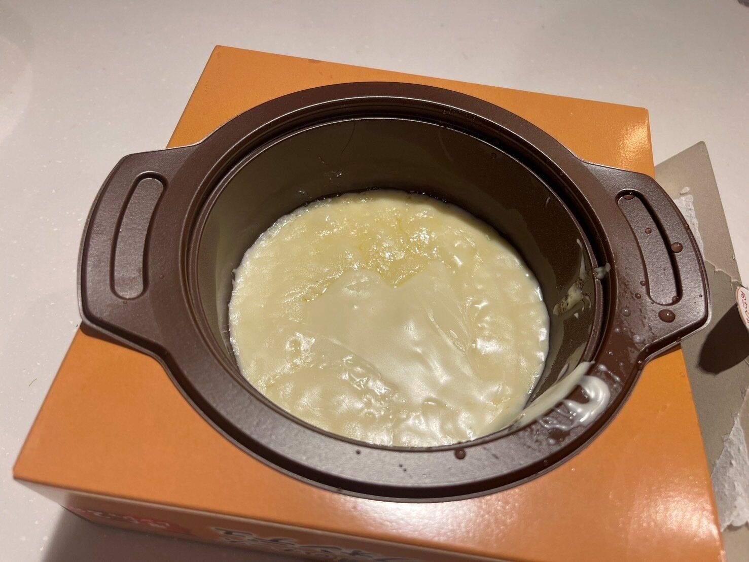 箱の中にはプラスチックの容器とチーズソースが入っていました。