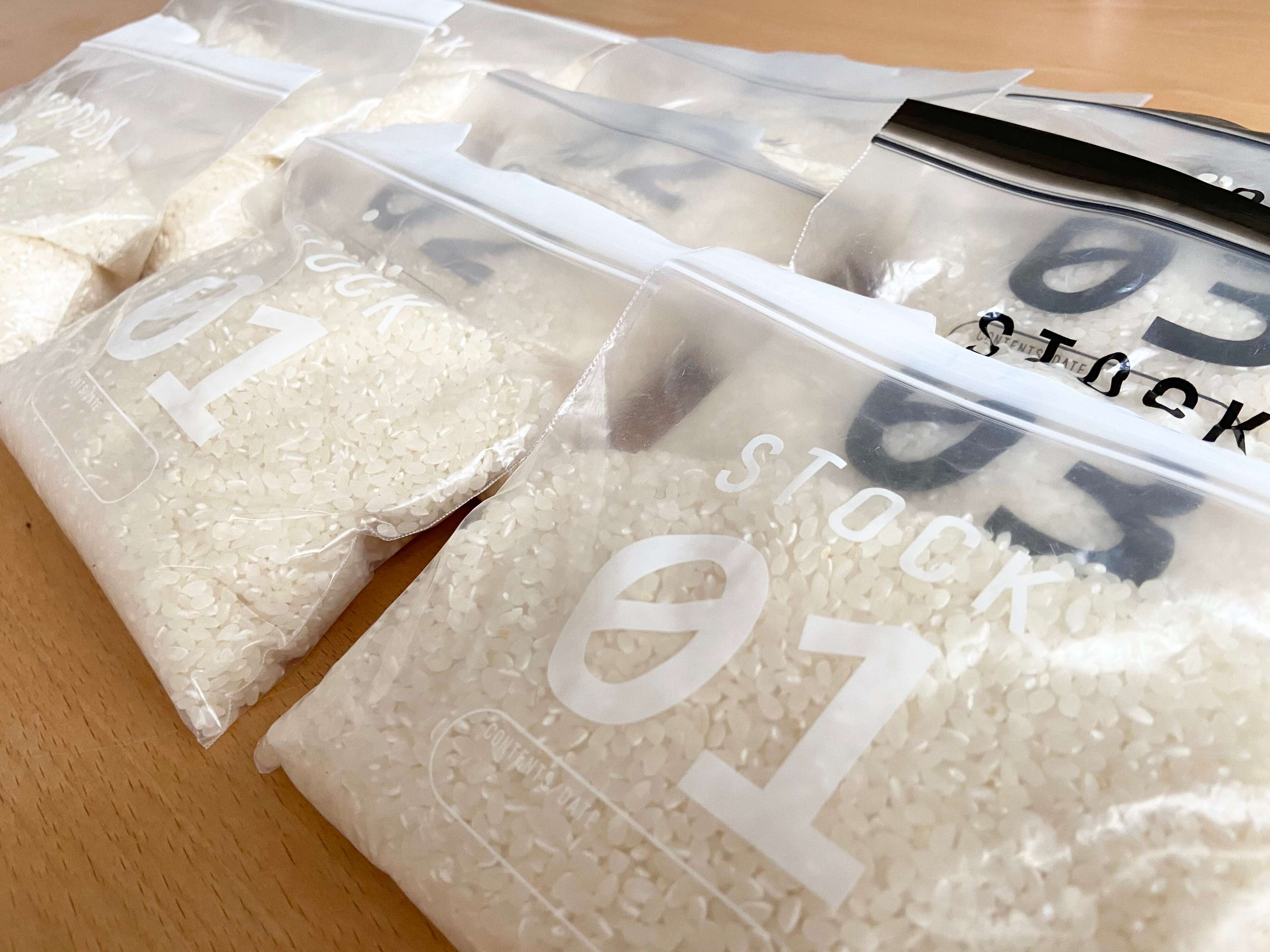 また買ってきたお米は、すぐに毎日使う量に小分けしてジップロックで冷蔵庫保管することで、平日の計量の手間を省いています。