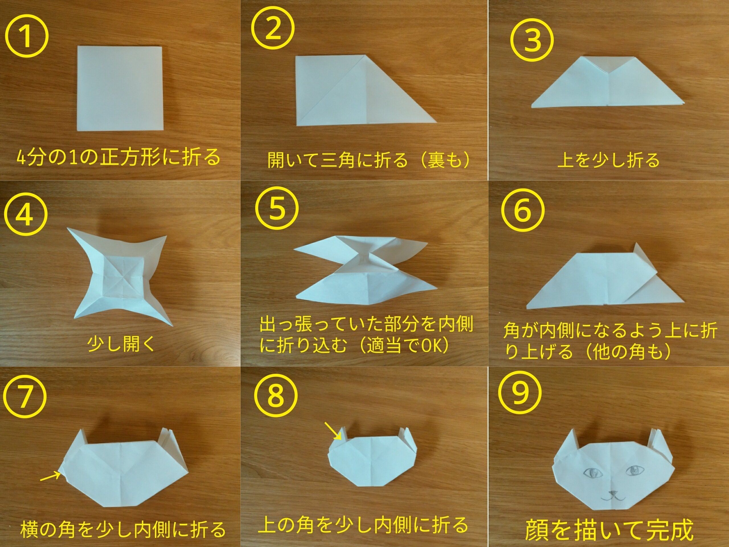 負けじと私も適当に折ってみたところ、猫ができました。