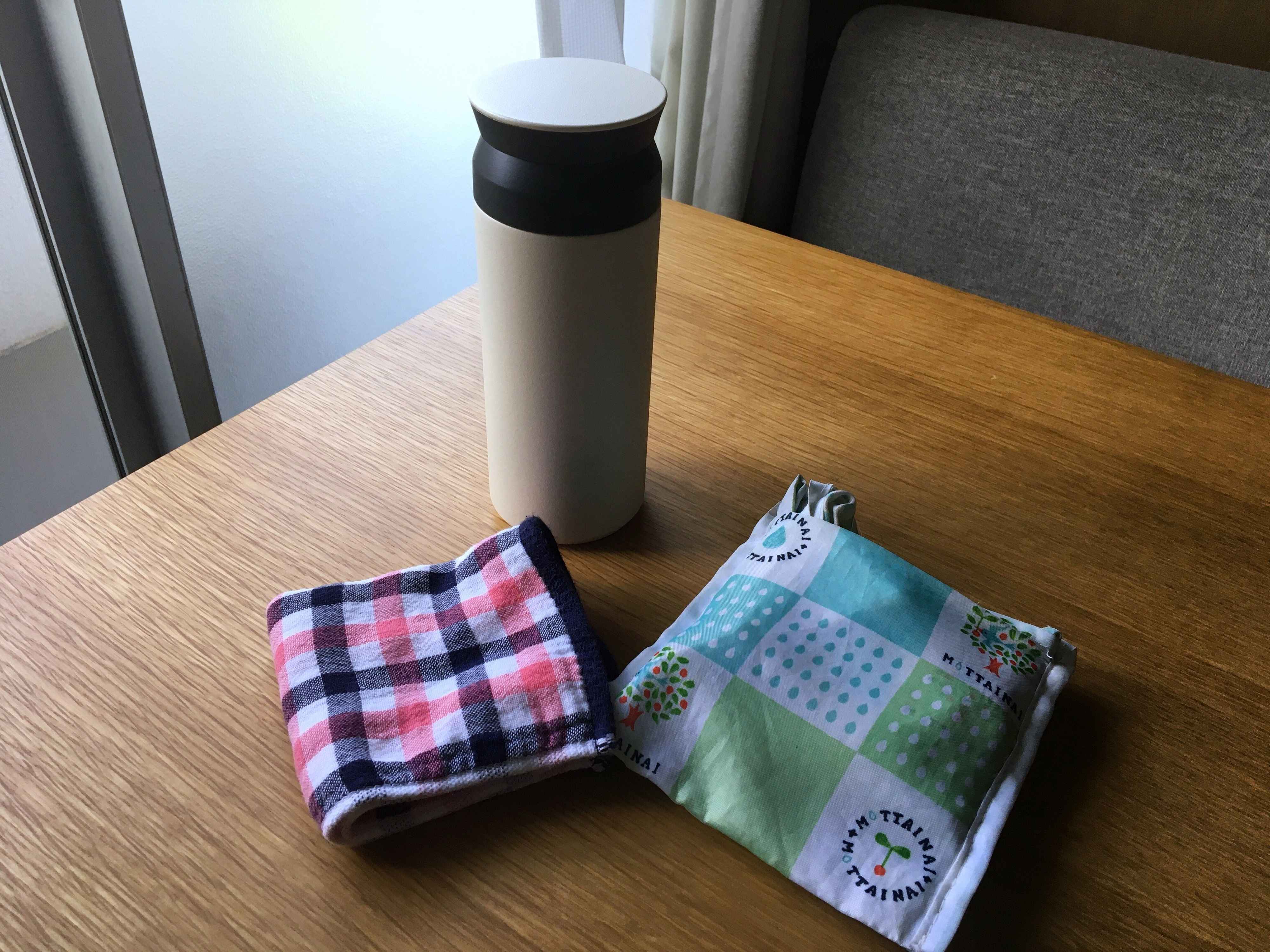 コロナの影響やレジ袋有料化に伴い、最近欠かせなくなっているのはハンカチ・エコバック・タンブラーの3つ!