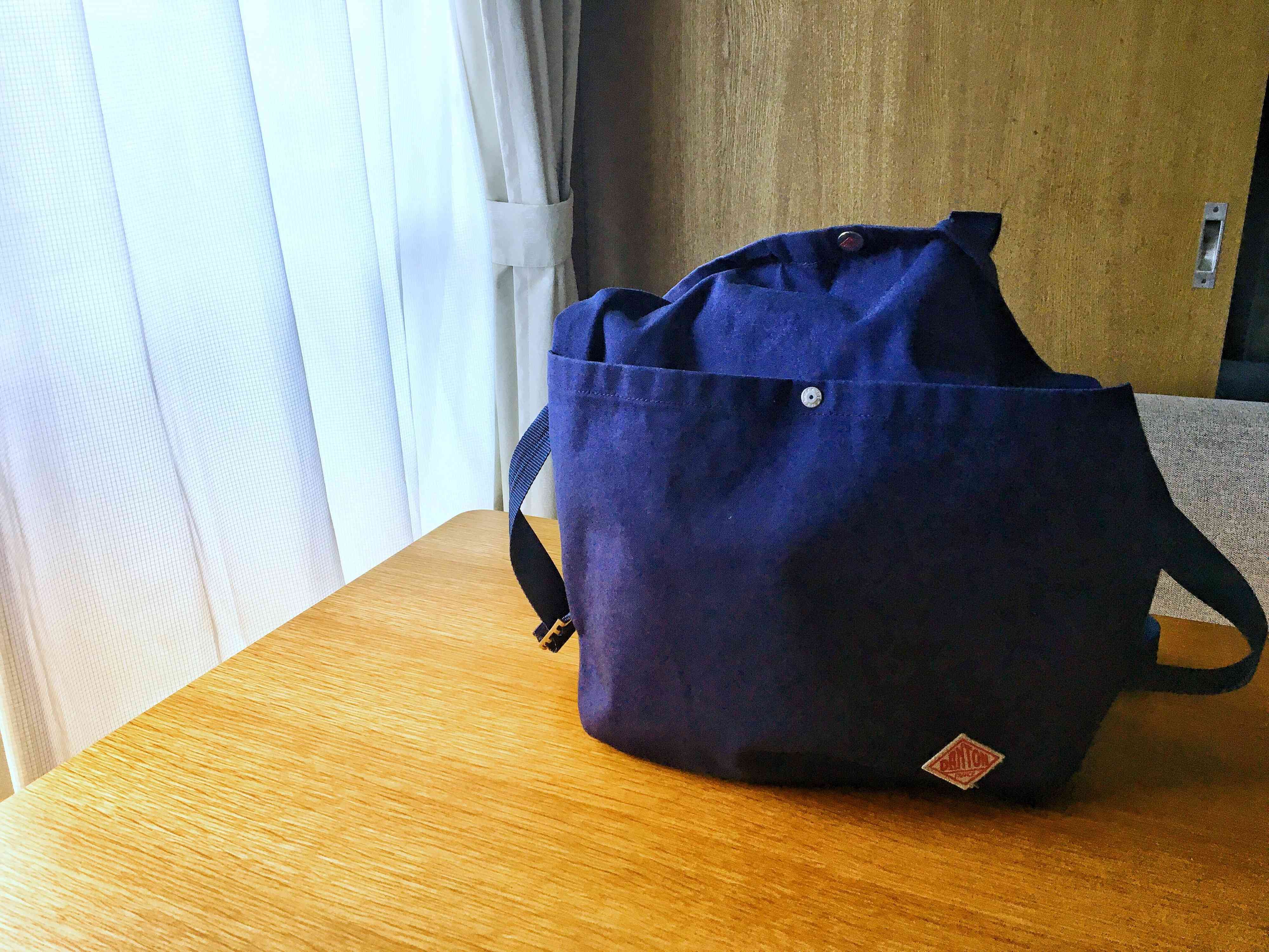 カバンはDANTONのもの。以前はトートバック派でしたが、娘の成長に伴いリュックに変更。口がバカッと開くので中身の出し入れが楽なのがお気に入りポイントです。