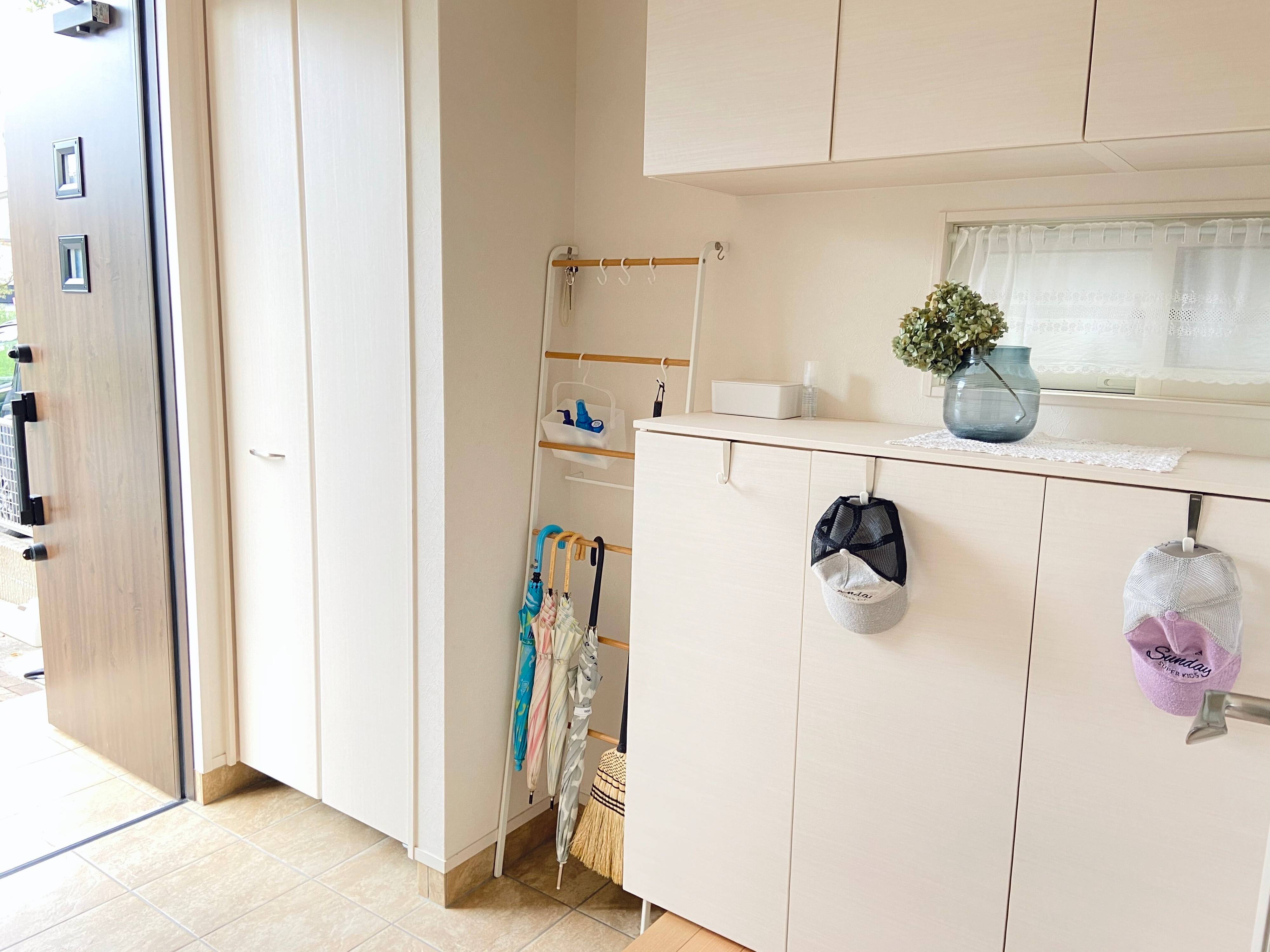 ホウキでゴミをはき出す時に邪魔になる傘立てや、掃除機をかける時に邪魔になりかつ洗い物が増える玄関マットを手放しました。