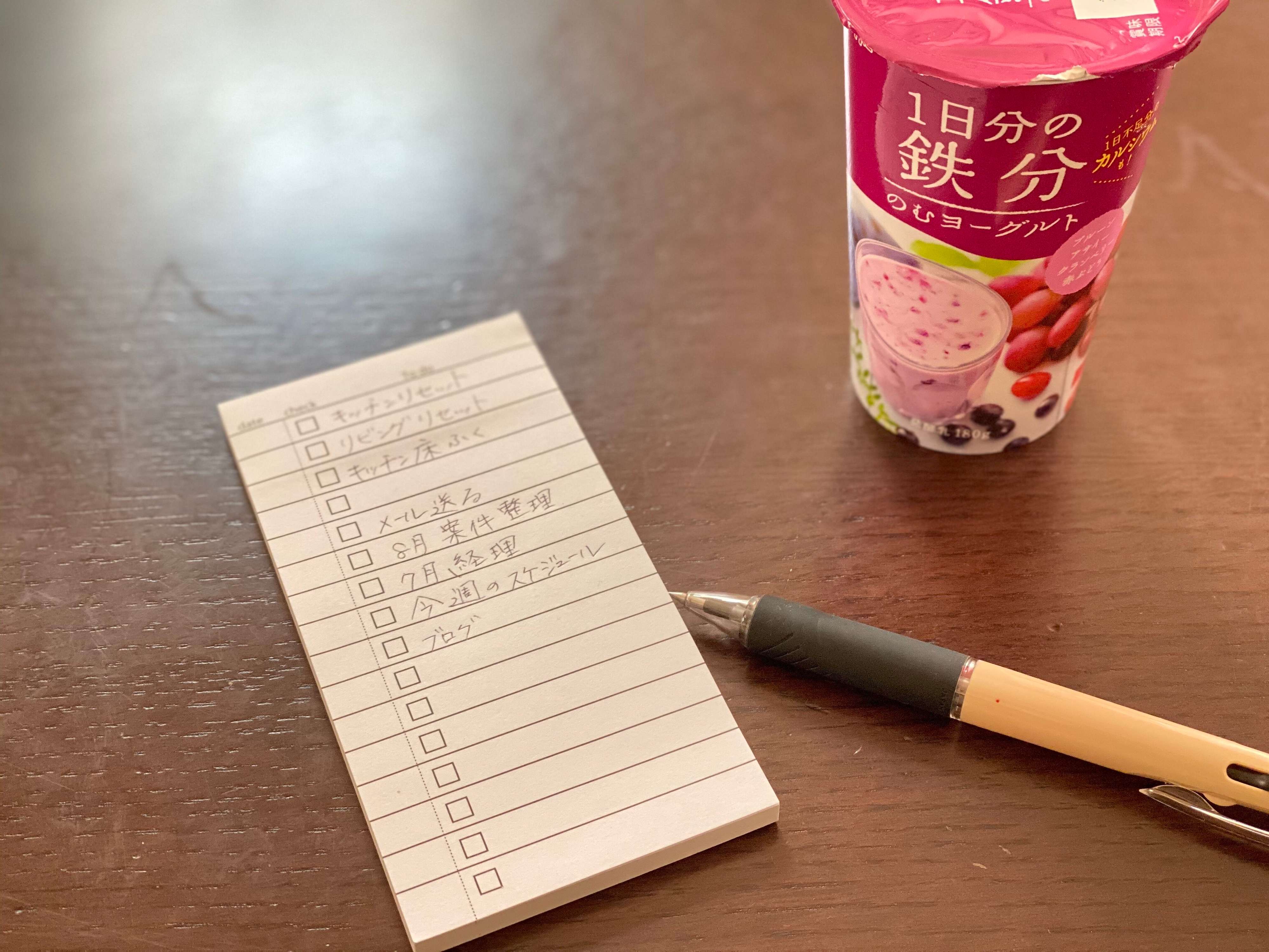 100均で買った付箋タイプのTO DOリストに、月曜リセットの内容と、仕事の内容を書き出しました。