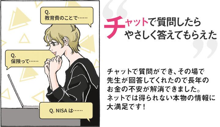マネー初心者さんにも分かりやすいと評判です! 金融商品の良い悪いよりも「わが家に合うか」を判断するヒントが満載。チャットで質問もできますよ! だから、“はじめの1歩”に最適です。