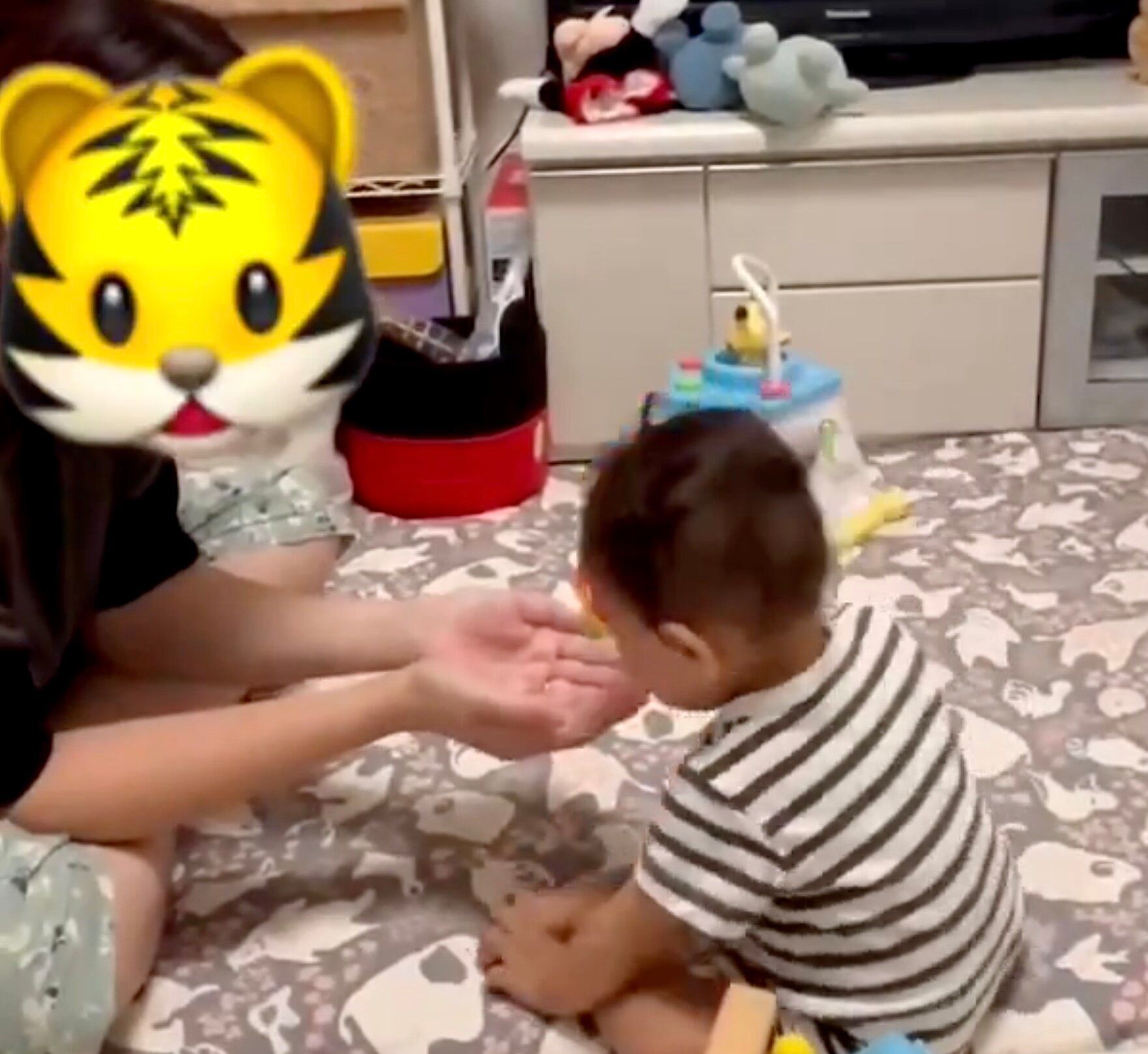「この動画を撮る1カ月くらい前から、おもちゃをどうぞしてくれるようになったので、いつものように『ちょうだい!』と手を出したところ、突然おもちゃではなく顔をくれました(笑)」