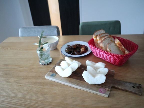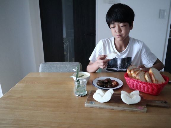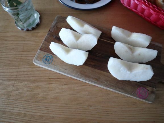 朝食の時に、梨は疲労回復にいいからね~と一言添えてだしてさりげなく食育( *´艸`)