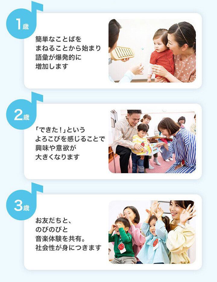 ヤマハ音楽教室には、家庭ではなかなか体験できない「音楽体験」を重ねて、得られる成長があります