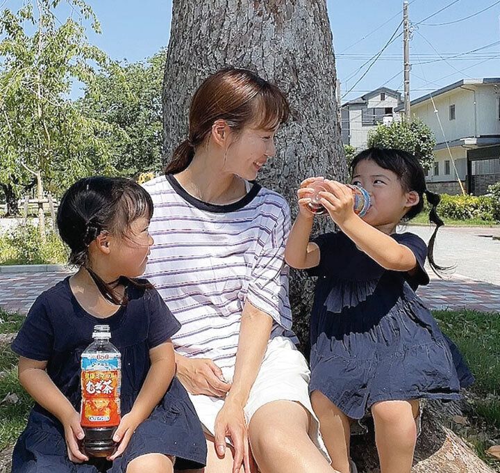 「『伊藤園の健康ミネラルむぎ茶』は昔から、夏場は特にお世話になっています。味は甘く香ばしいけど、さっぱりしていて飲みやすいです」というのは、サンキュ!アンバサダーの花織さん(@xoxo.twins_log)。