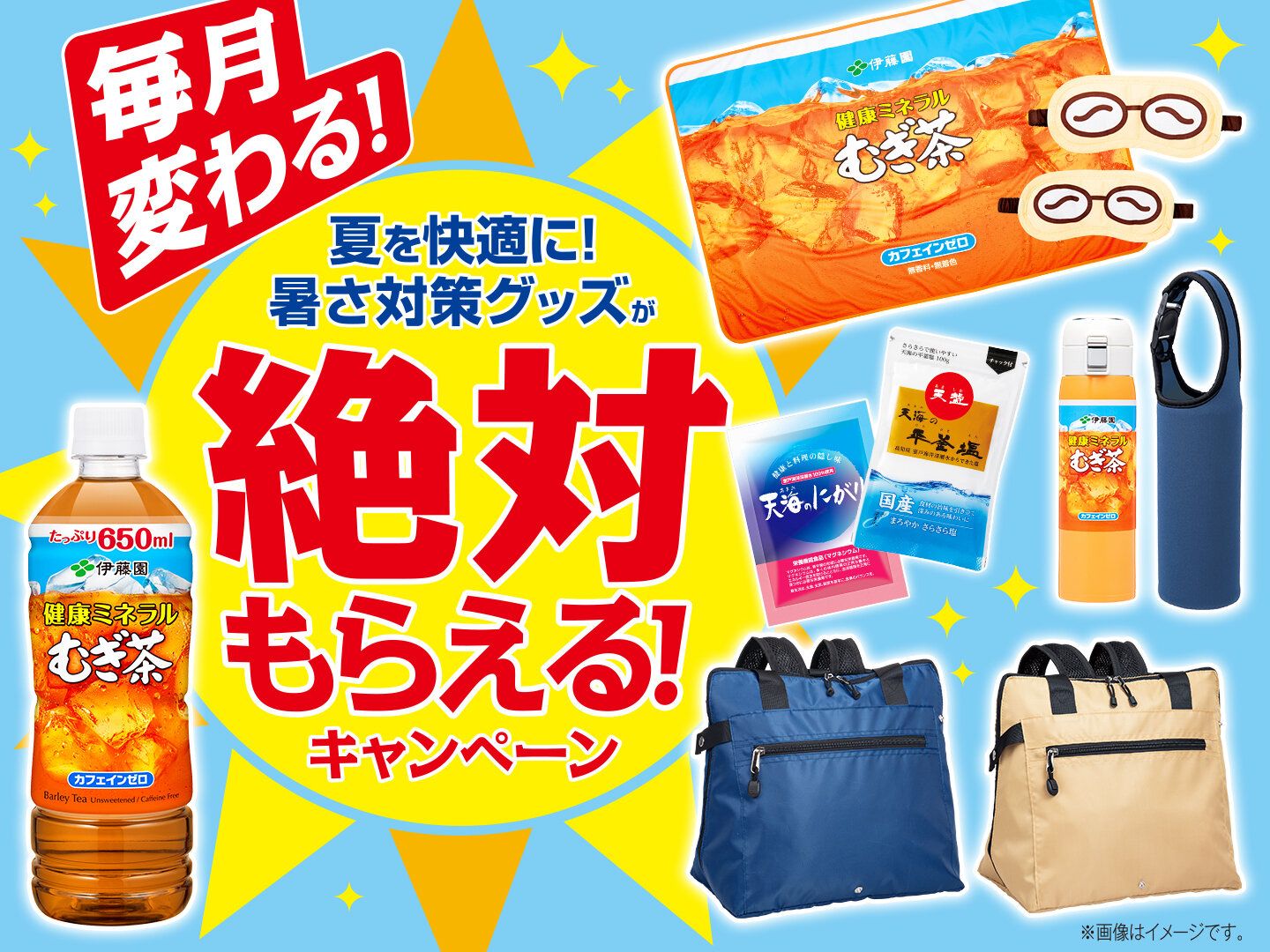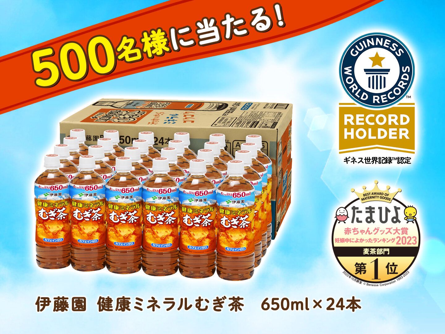 アンケートに答えてくれた方の中から抽選で500名様に、伊藤園「健康ミネラルむぎ茶」を、1ケース(650ml×24本)プレゼントします! 家族みんなで飲んで暑い夏を乗りきろう!