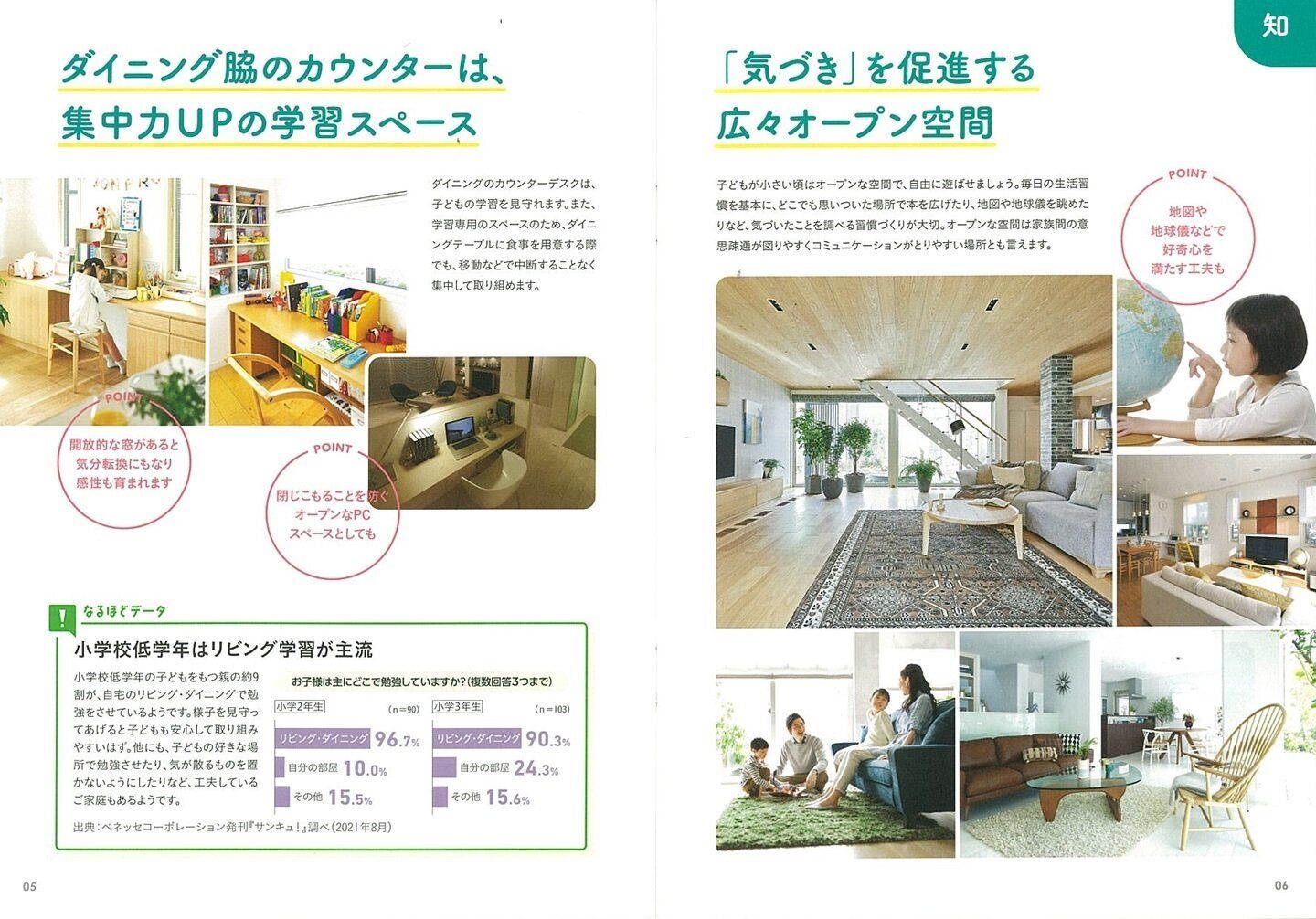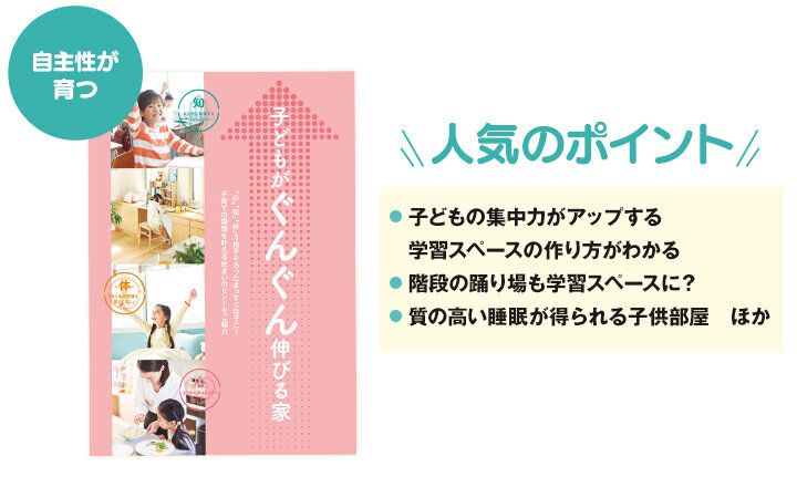 お子さんと一緒に冊子の実例を見ながら、どんな家がいいか、ぜひ話し合ってみてください。家づくりから参加することも、子どもの自主性を育てるのに役立つはず。