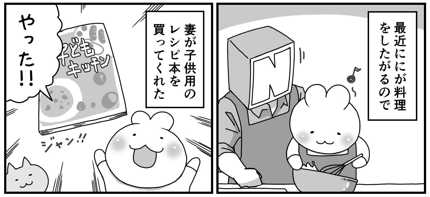 楽しそうに料理をしているのは、パパ頭さんの息子さんのににくん。料理に興味を持つににくんに、ママが子ども用のレシピ本を買ってくれました。