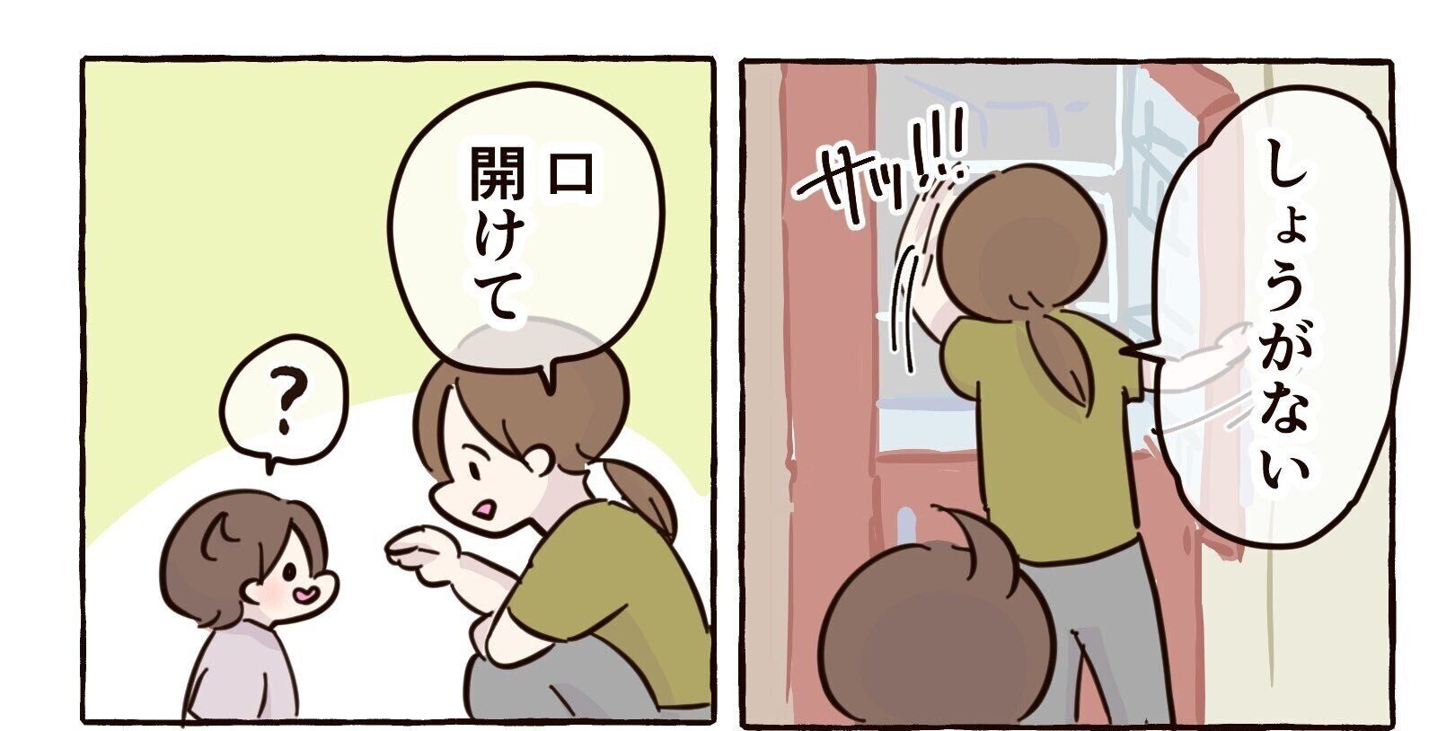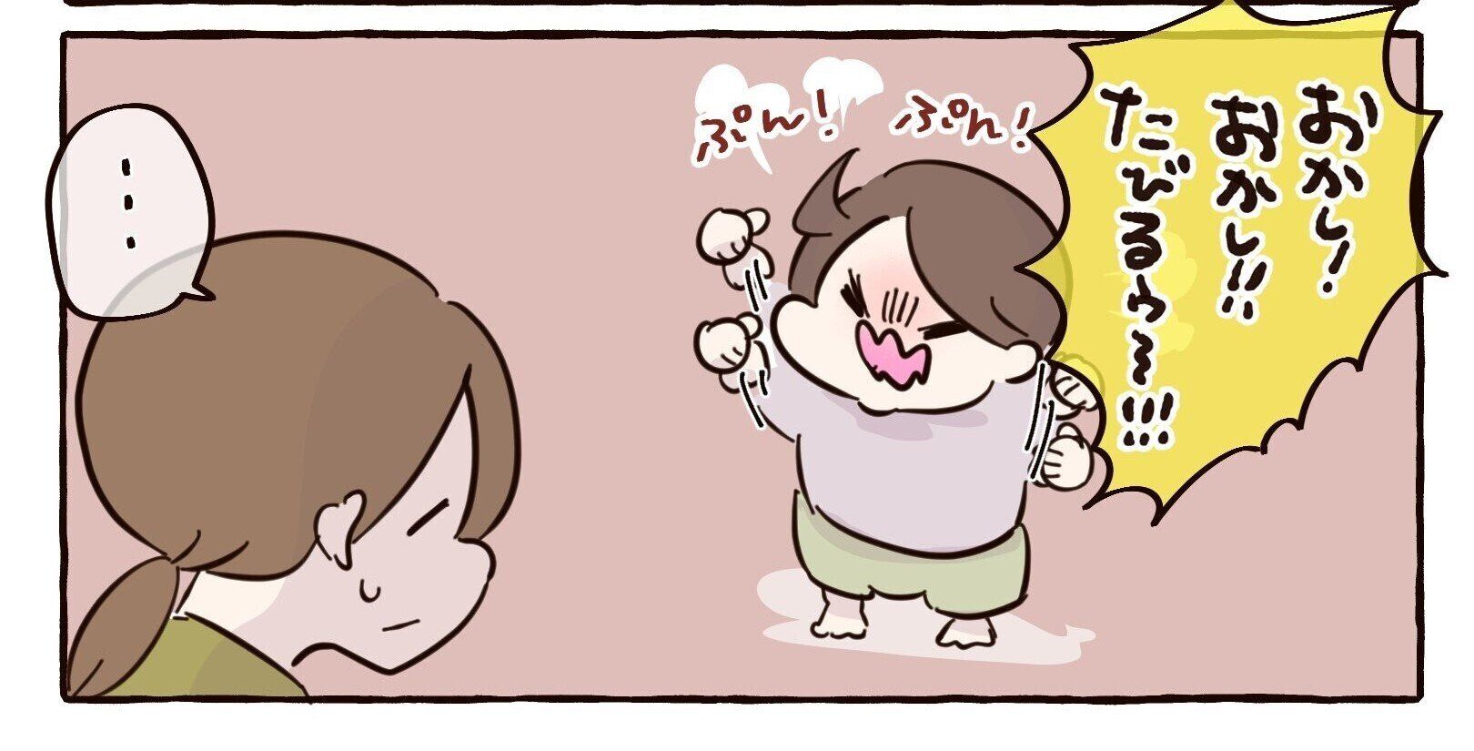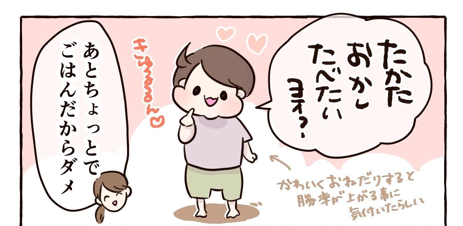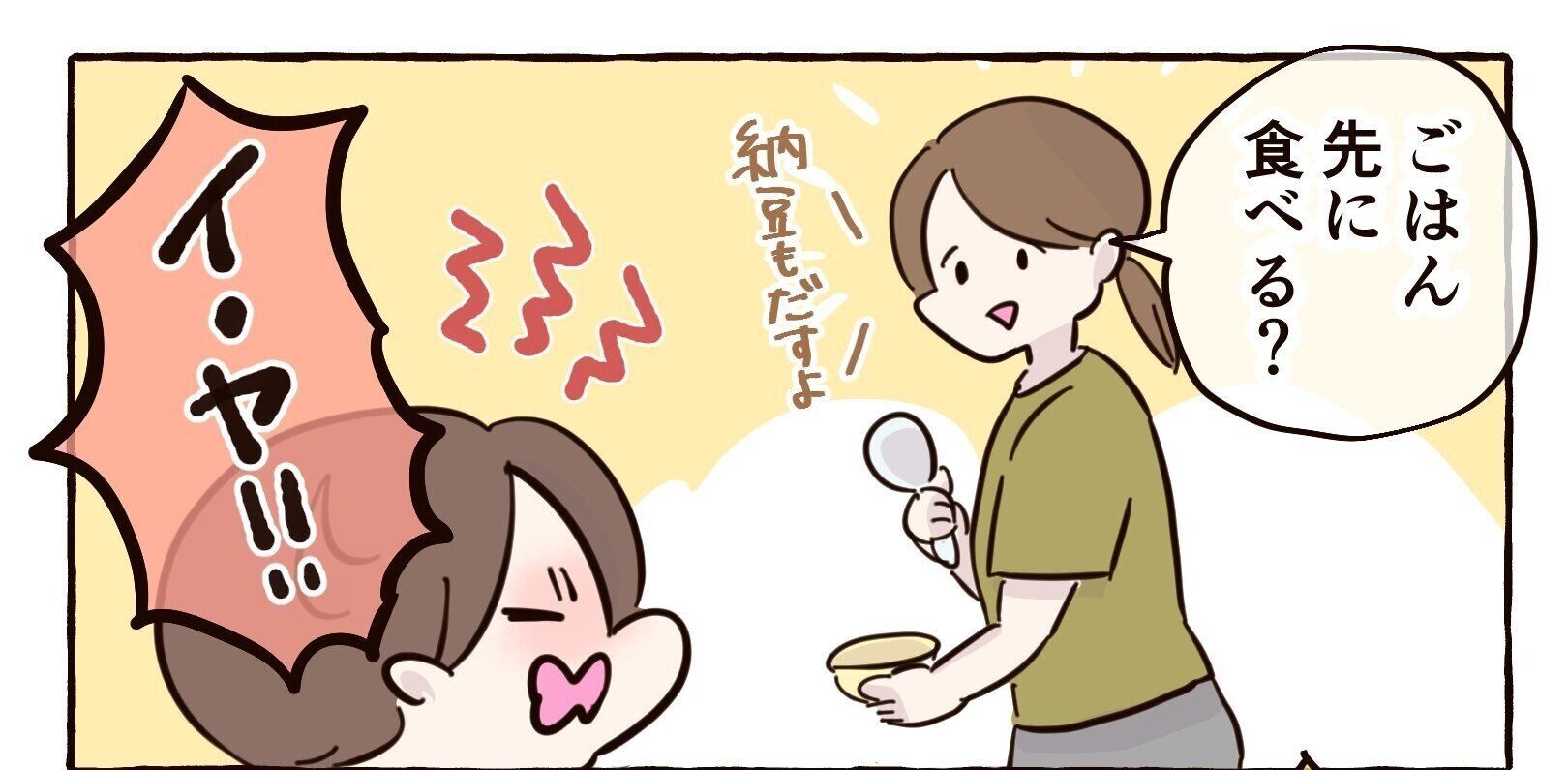 食事前にお菓子を食べさせたくないたきもとキウイさんは、それならばご飯を先に食べさせようと試みますが……