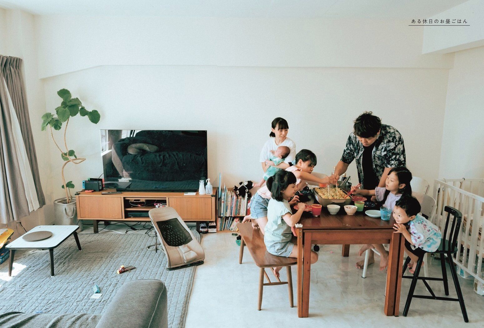 ―――料理、掃除、洗濯、オムツ交換、保育園の送迎……中学生から0歳まで5人の子どもとエハラさん・ちーちゃん夫婦の毎日を描いたほっこりファミリーストーリー。家族の日々の暮らしぶりから、夫婦のちょっと真面目なトークまで、「家族っていいな」としみじみ思わせてくれる1冊です。