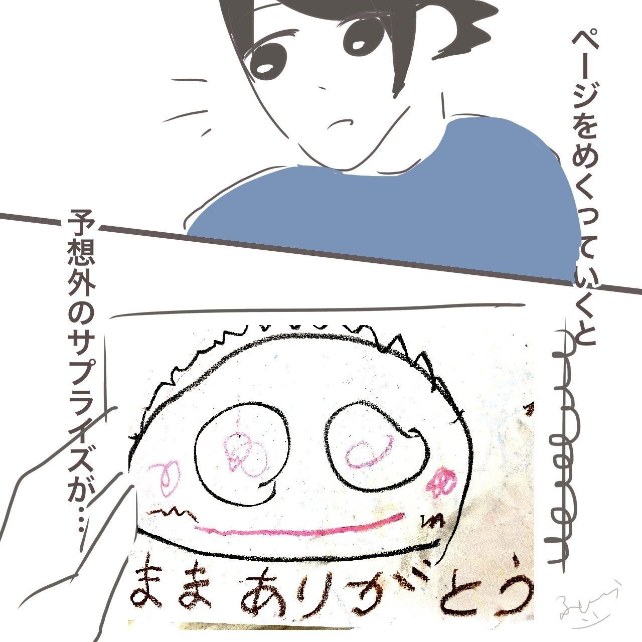 そこには、顔を描いた絵と「ままありがとう」の文字が……