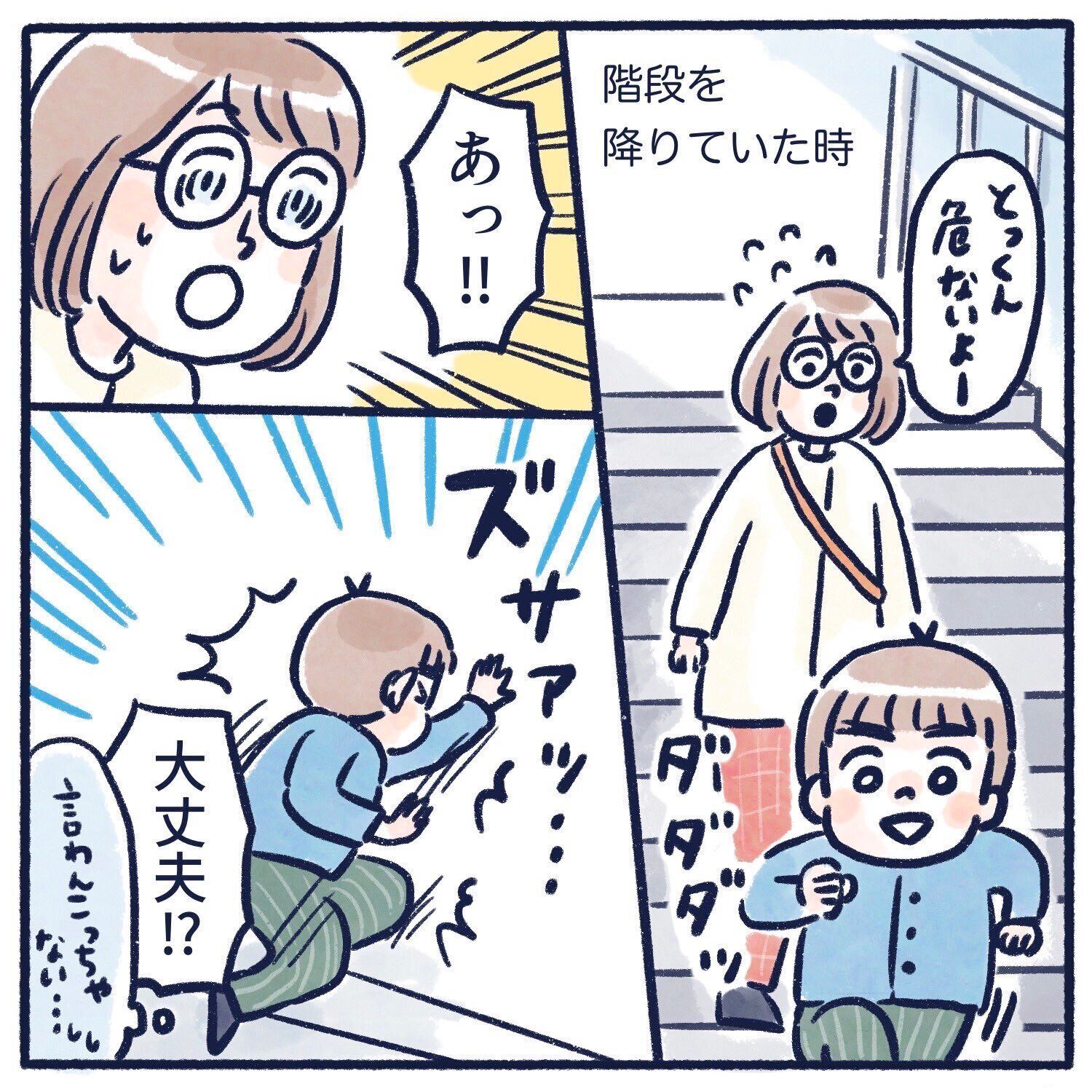 「あっ、危ない!!」階段で転んだ5歳の息子が放った一言にママ衝撃!その結末に思わず笑ってしまう人が続出!