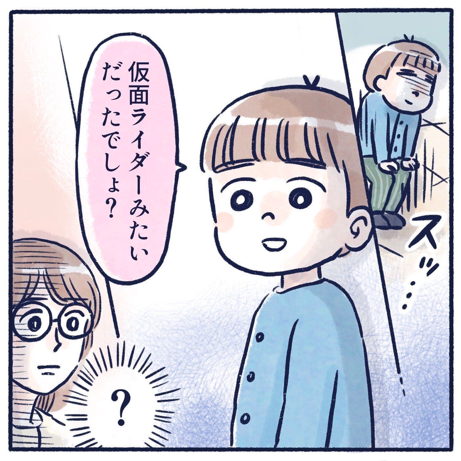 「お友だちやお姉ちゃんと戦いごっこをするときに変身しているみたいです。昔のスーパー戦隊や最新の戦隊、仮面ライダーと本当にいろいろです。本気で戦わないようにだけ、注意しています!」