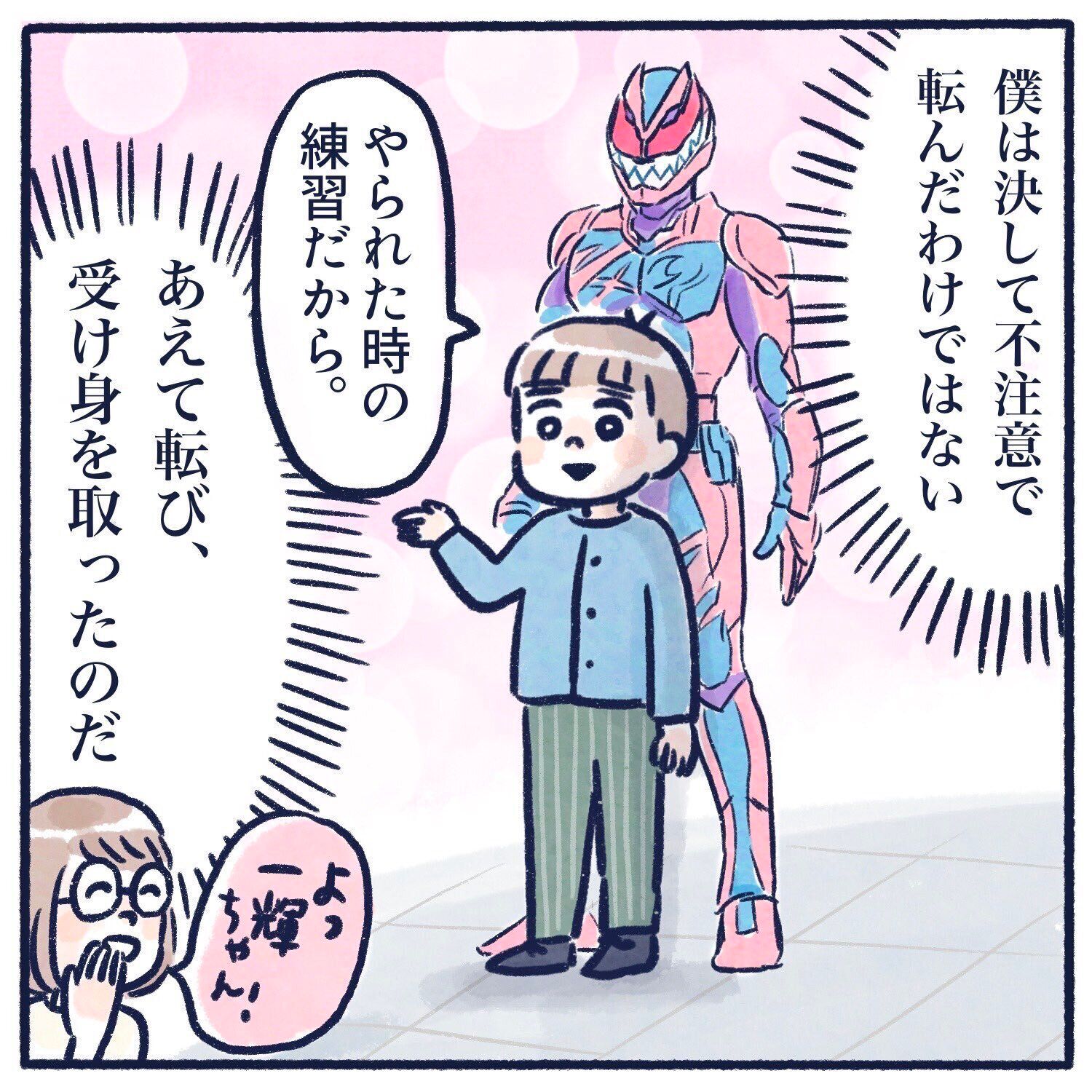 ですが、日ごろから転んだときに「全然痛くないよ」と立ち上がっているとは、とっくんがヒーローのように強い心の持ち主だとわかりますね。
