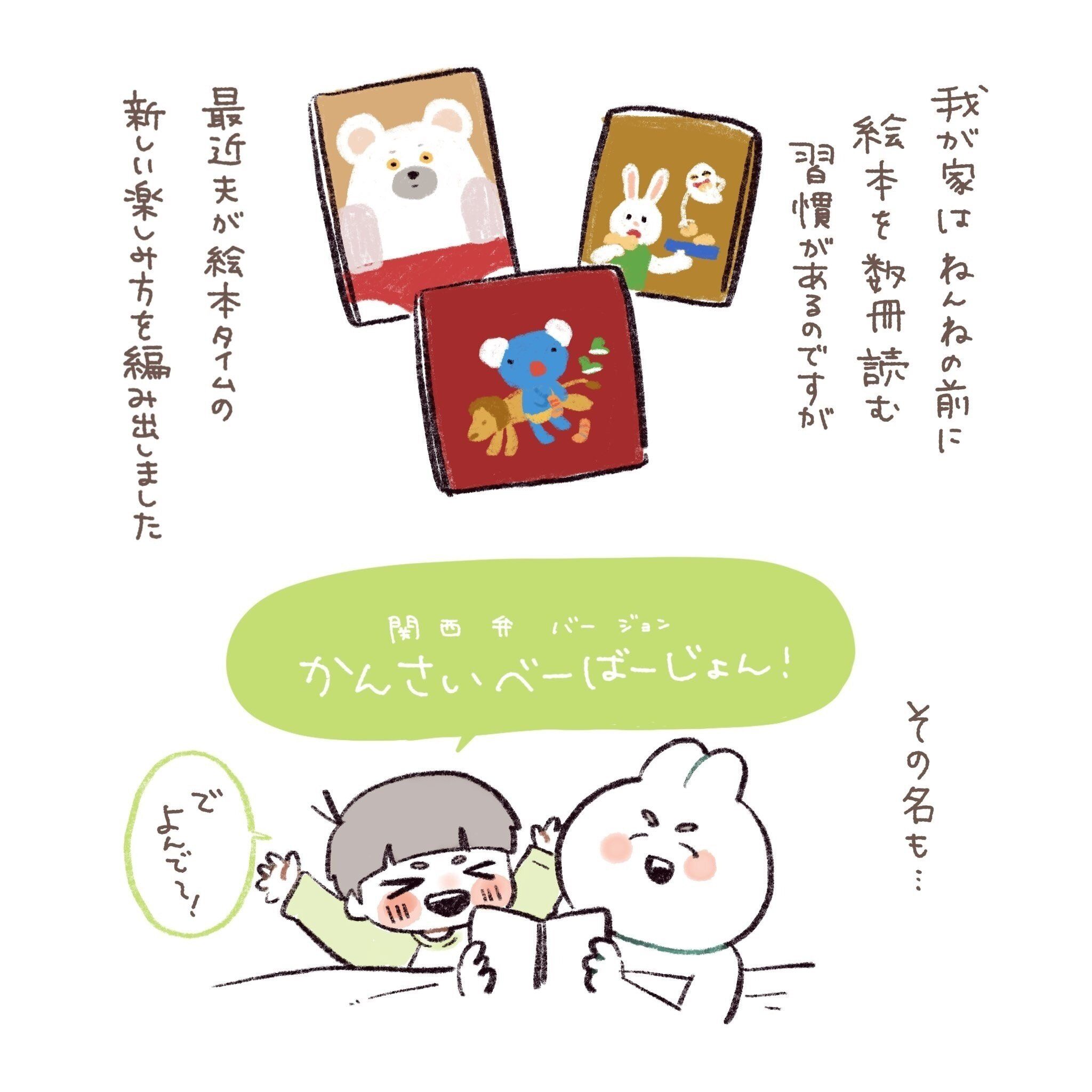 「ありがとうございます!もともとは関西弁バージョンと夫が称したのですが、息子が関西弁と発音できず『かんさいべー』と言うので、それがかわいくて私と夫も『かんさいべーばーじょん』と呼ぶようになりました」