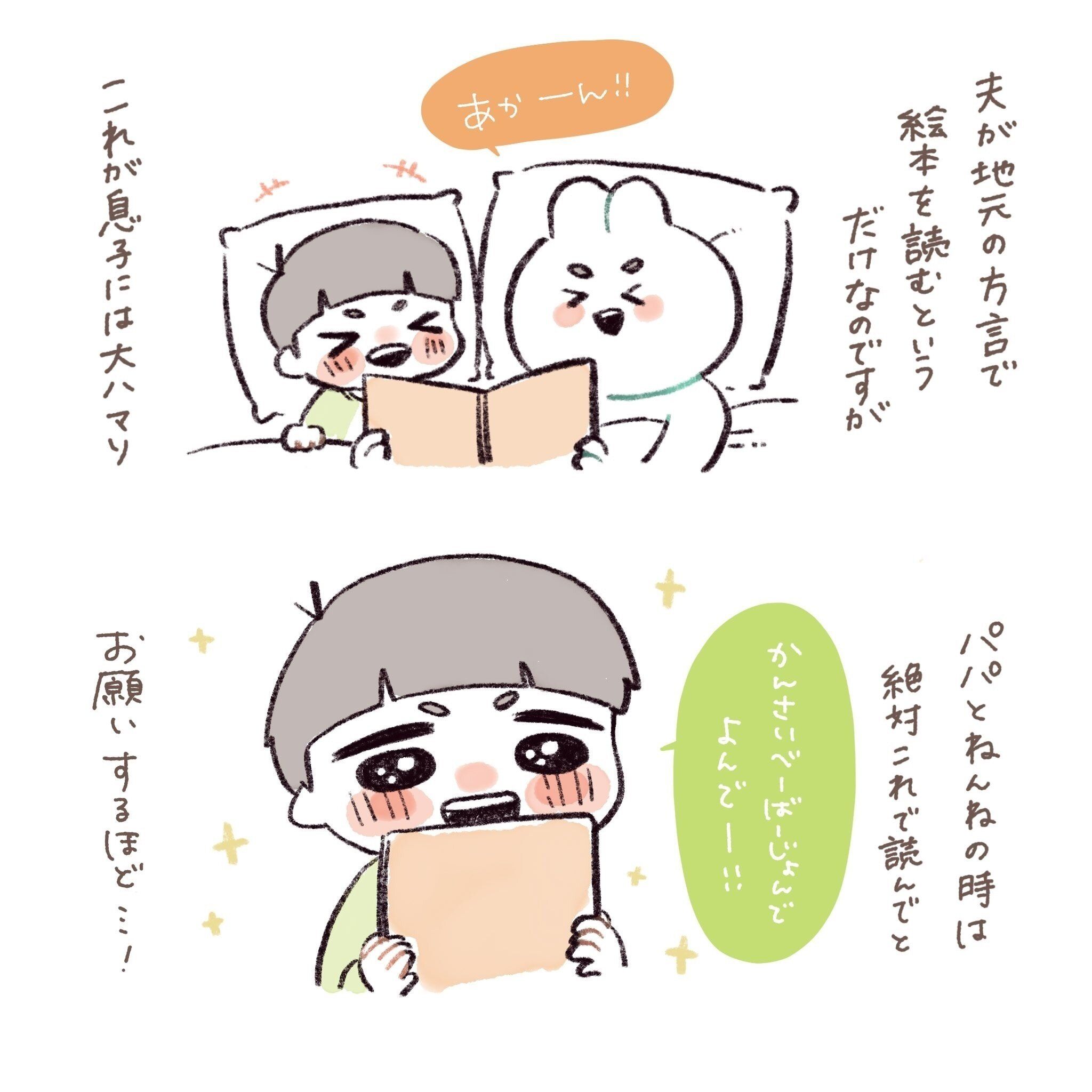 パパが編み出した「かんさいべーばーじょん」を聞いているうちに、息子さんは関西弁が少しずつ上達している模様。