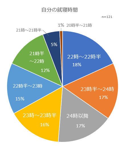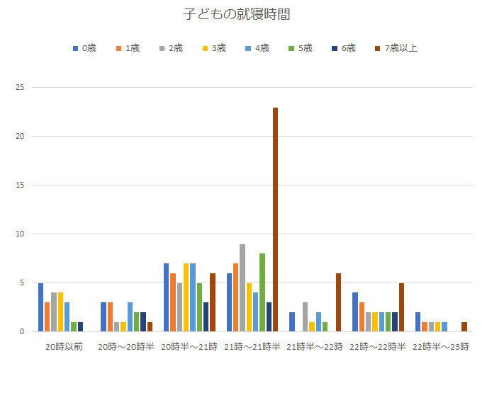 年齢別に見ても就寝時間にはばらつきが見られました。就寝時間は各家庭の生活習慣が影響しているのかもしれません。