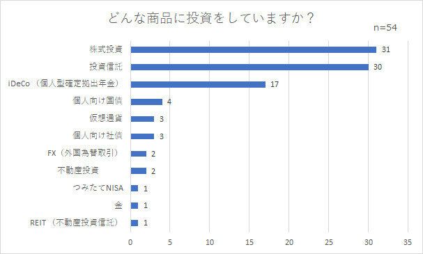購入されている金融商品の内訳を見ると、一番多いのは株式投資と投資信託でした。最近では金融商品を証券会社のほか、ネット銀行、手軽なアプリからも取り引きが可能になり、少額から投資ができるので、多くの人に浸透してきているのかもしれません。