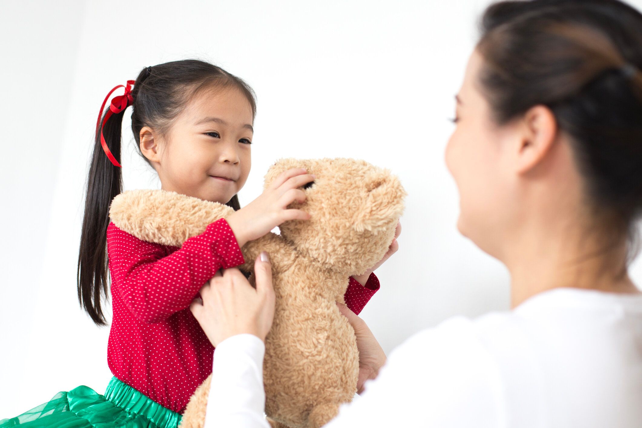 お世話遊びは、基本的にお子さんとお人形の一対一で成り立ちますが、折にふれて「お人形、喜んでるよ」と気持ちを代弁して伝えましょう。「やっぱりそうなんだ」と思え、うれしさが倍増します。