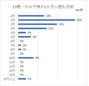 年齢別に見ていくと、月に1冊しか読まないと回答した人が多かった13歳以上の子どもが、意外にも「増えた」割合が高かったようです。