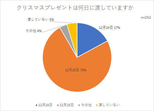 プレゼントは25日に渡す人がほとんど