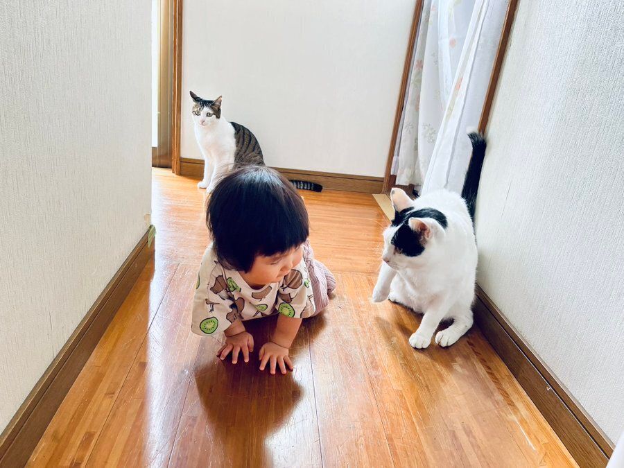 「関係性をひと言で表すのはむずかしいですが、確かに猫は子どもを構ってくれて兄弟のようです。一方で子どもは、自分の手で猫草をあげるのを楽しみにしていて、そういう部分は『人間と猫』の関係が見えます。状況や子どもの成長に応じて、これからもいろんな関係性が見えてくるのだろうと思います」