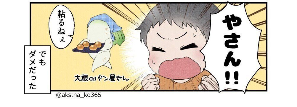 どうにか続けようと、「だいこん」に「パン」をつけましたが……