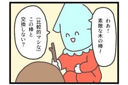 (比較的マシな)木の棒との交換を持ちかけるのです!さて、交渉の結末は……?