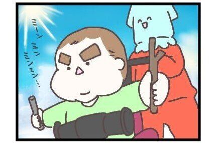 この漫画のあと、息子さんは両手に持った棒をどうしたのでしょうか?