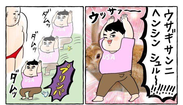 息子は言葉の意味がよくわからなかったようで、ウサギさんへの変身をたんたんと続けていました。