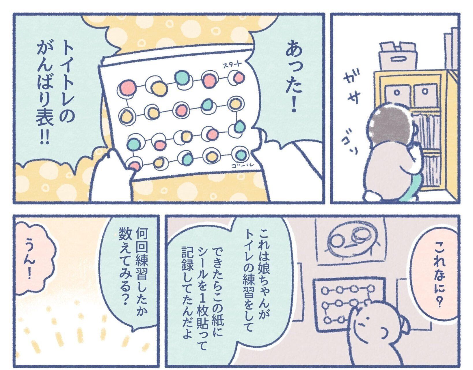 それは娘さんがトイレトレーニングをしていたときに、もちこさんが作った、がんばり表!