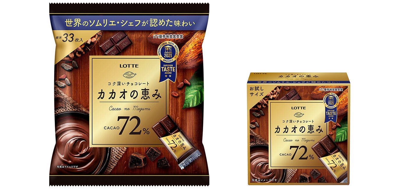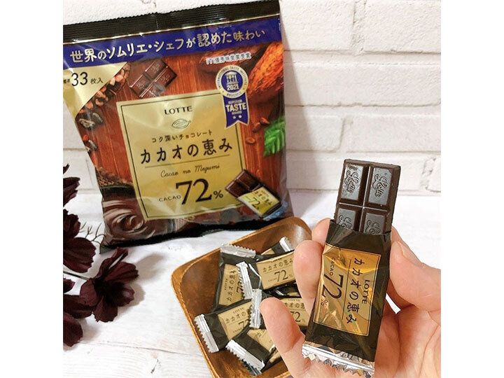 おいしくて食べやすいのに、カカオのコク深さと香り、ほの甘い口どけを感じられるロッテ「カカオの恵み」。こだわり抜いた1枚だからこそ味わえる口どけとカカオの余韻…。個包装だから、おうち時間にも外出先でもぜひ♪