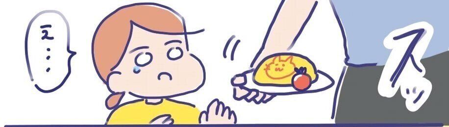 すると、ちょうど帰宅したパパが、オムライスをすっと手に取るのです。