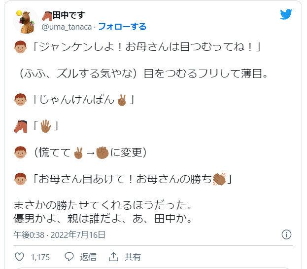 ある日、田中ですさんは7歳の息子さんに、じゃんけんをしようと誘われます。