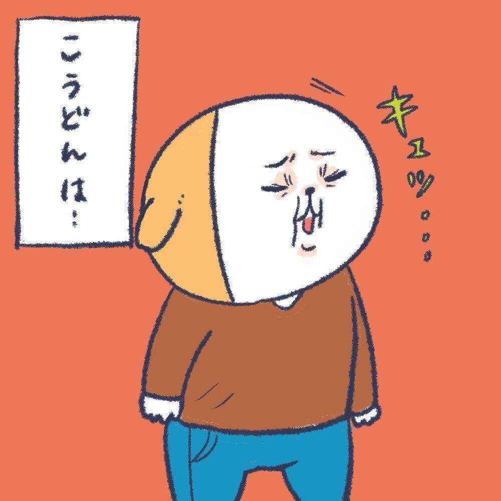 どうやらこうどんくんは、力いっぱい目をつむって現実から目を背けているよう。そのあまりのかわいさに、つい表情がゆるんでしまったおうどんさんなのでした。
