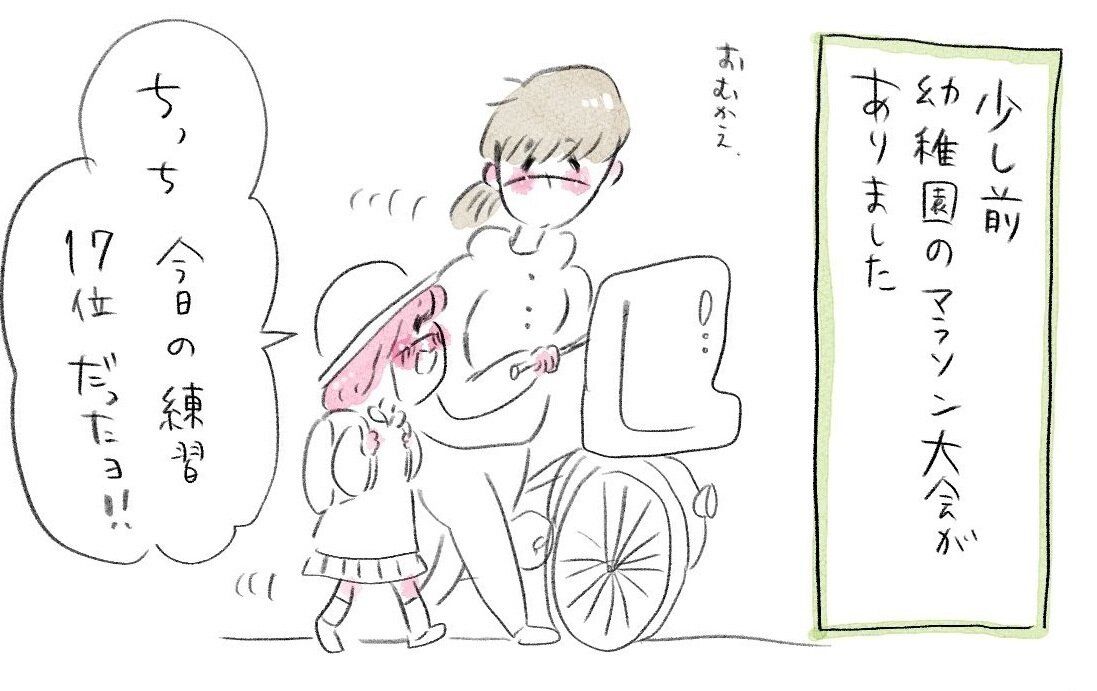 マラソン大会の練習をした娘さんは、もっと順位を上げたい様子です。