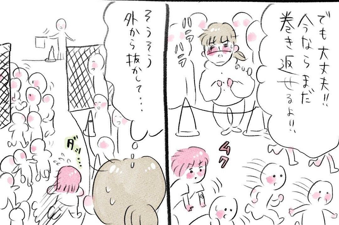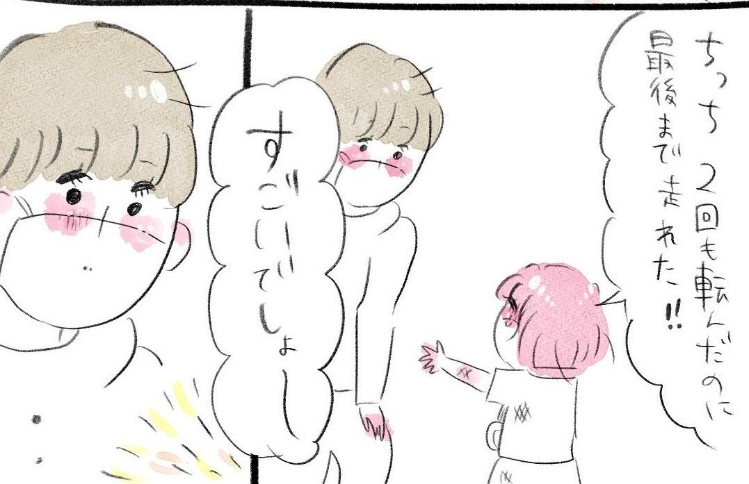 「2回も転んだのに、最後までゴールできただけで私的にはもう花丸でした。しかも予想よりだいぶ追い上げてきたので、心が折れることなく走ったんだなぁと感心しました」