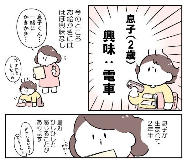 幼いころの倉田けいさんが好きだったのは「お絵かき」。いっぽう、現在2歳半になる息子さんが好きなのは、どうやらお絵かきとは異なるようです。
