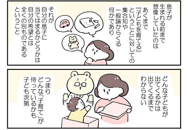 自分とはまったく異なる思考を持つ息子さんを見て、倉田けいさんは「子育てではなく、息子育て」だったと気づかされます。