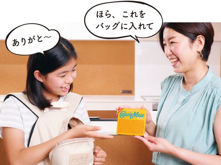 「子どもが通っている塾は休憩時間が短いみたい……。でもカロリーメイトなら、小腹がすいたときにサッと食べられるから、子どもに持たせるのにぴったりなんです」 サンキュ!アンバサダー井ノ浦香織さん(東京都 43歳)美玲さん(12歳)