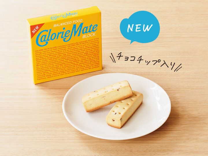 カロリーメイト ブロックタイプに新フレーバーのバニラ味が登場! サクッとしたバニラ風味の生地にチョコチップがアクセント♪