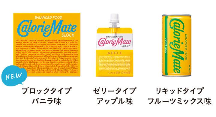 カロリーメイトはいつでもどこでも手軽に5大栄養素をとれる栄養調整食品。おうちでも外出先でもシーンや好みに合わせて選べるラインナップが豊富にそろっています