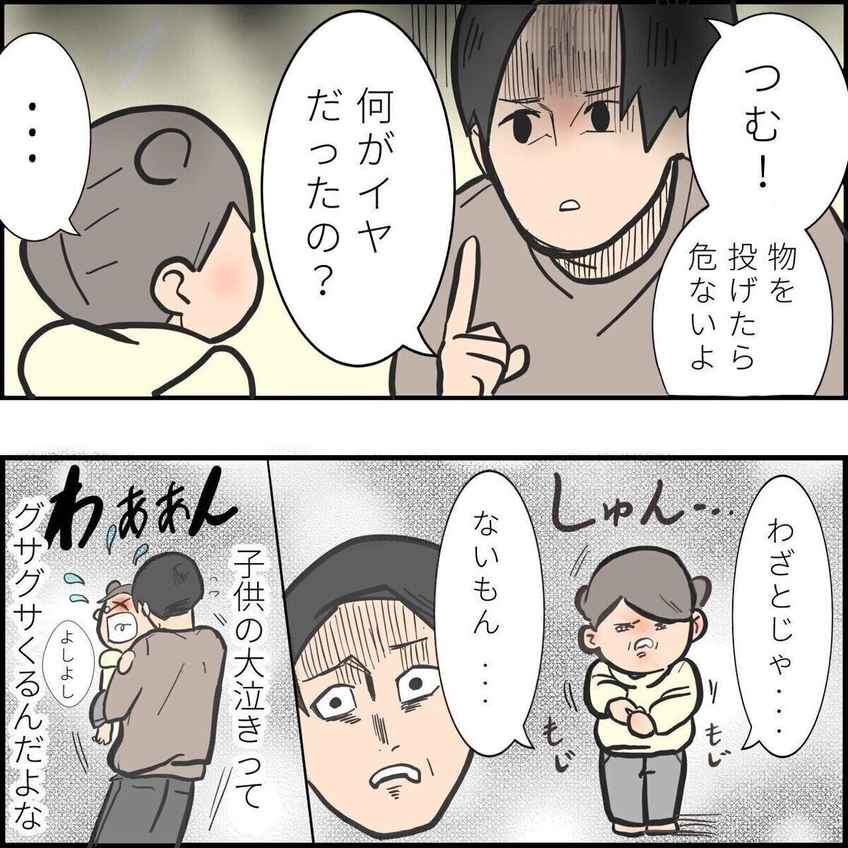 たしなめるために声をかけましたが、つむちゃんは大泣き。その様子にゆーぱぱさんの気持ちも沈んでしまいました。
