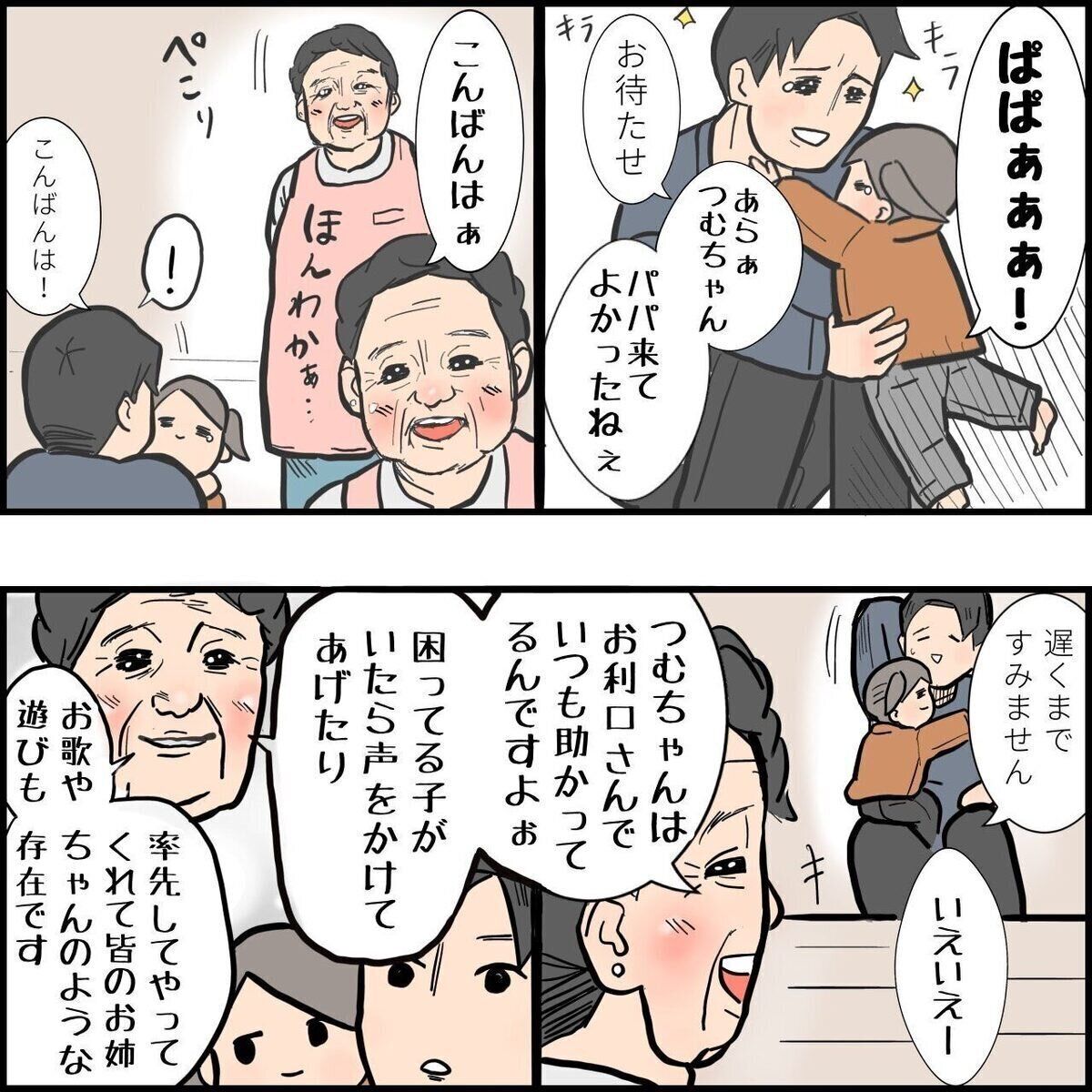 幼稚園の先生からつむちゃんがお利口さんで助かっていること、だから家では甘えてしまうかもと言われたとき、ゆーぱぱさんはどんなお気持ちでしたか。