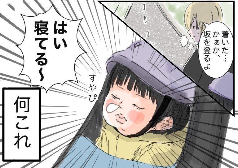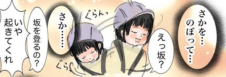 楽しみにしていた坂道を前に、お子さんは寝落ちしてしまったのです!