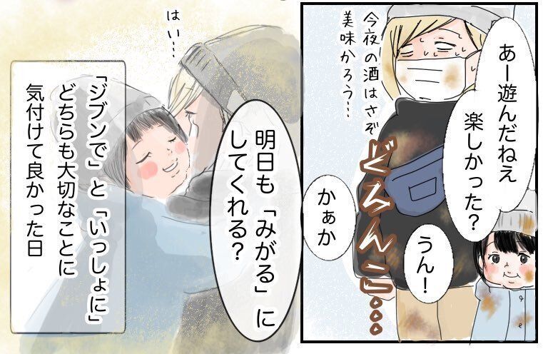 お子さんの「ジブンで」やりたいという気持ちと、「いっしょに」遊べるとうれしい気持ち、どちらも大切なことに気づいたというおしそさんでした。